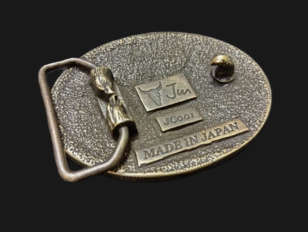日本のバックル専門店が企画・販売する純国産バックルです。日本の職人さんの技が光る、ハイクオリティーな仕上がりを是非ご堪能下さい!素材はピューター(錫)、リングは真鍮製です。アンティーク調のダークカラーで仕上げました。アメリカンなテイストながら純日本製に拘って作ったバックルです。